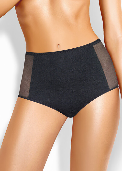 Трусы макси из полиамида, передняя часть из мягкого сетчатого полотна, по центру преда внутренняя вставка из полиамида, по талии мягкая внутренняя резинка, по ножке полуокантовка.