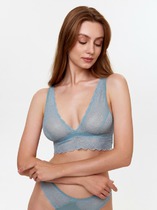 Бюстье базовой расцветки из хлопкового полотна – гипоаллергенного и приятного на ощупь. Мягкие чашки без косточек гарантируют полный комфорт. Бретели в бюстье регулируются. По нижнему срезу проходит жаккардовая тесьма.