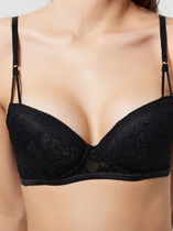 Бюстгальтер без стана, на каркасах (2 тип). Жесткие формованные чашки СN-53.14C. Ластовица выполнена из рибаны, подкладка из монокапрона. Чашки и бочки из рибаны. Верхний срез чашки декорирован кружевом 60 мм. По внешнему краю кружева по изнаночной стороне настрочена эластичная тесьма 6 мм (жилка, WT4-6). По пройме и верхнему срезу стана настрочена жесткая эластичная тесьма 10 мм (08/10) с зубом в один прием. Нижний срез обработан жесткой эластичной тесьмой 12 мм (10/12) с зубом в один прием. Бретель 10мм и 15 мм (по размерам) с регулировкой. Кольца и регуляторы 10 и 15 мм (по размерам). Застежка на крючки и петли двойная двухрядная 28 мм и 38 мм (по размерам).