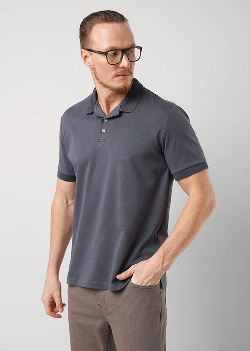 Мужская футболка-поло, прямого силуэта из трикотажного полотна, с содержанием хлопка. Модель с коротким рукавом на вязаной манжете и функциональной планкой на пуговицах. Воротник отложной, вязаный. Отличный вариант для встреч с друзьями.