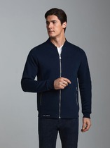 Мужская куртка на молнии из трикотажного полотна с капюшоном на подкладе. По капюшону резинка со стопором, спереди удобные наклонные карманы. Куртка на поясе и с манжетами. Дополнена фирменной фурнирурой.