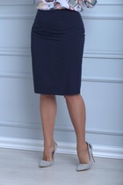 Юбка миди прямого силуэта из вискозного трикотажного полотна. По талии притачной пояс на внутренней резинке, спереди нашивка. По переду и спинке средний шов. Сзади разрез.