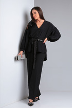 Рукав втачной, длинный, спущенный. Горловина обработана обтачкой из осн полотна. По низу изделия и рукавов пояс и манжеты с эл тесьмой 30RV.