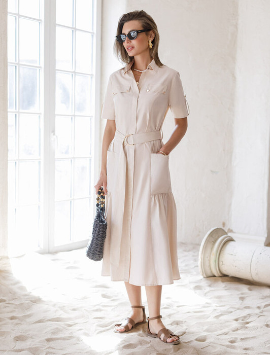 Совместные покупки Омск Женская одежда Платья — 09.04 Vilatte Платье из легкого хлопкового поплина D22.206 светло-бежевый