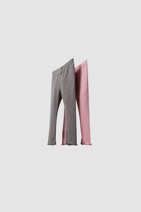 2ER-SET UNIFARBENE LEGGINGS MIT RIB