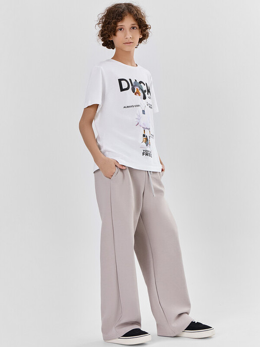 Брюки прямые свободные, посадка средняя. Пояс отрезной, с эластичной тесьмой внутри (внутренняя 40мм 40RV). С внешней стороны пробиты петли и вставлен шнур 10PX-2. В боковых швах обработаны карманы.  Нижний срез брюк обработан швом вподгибку.