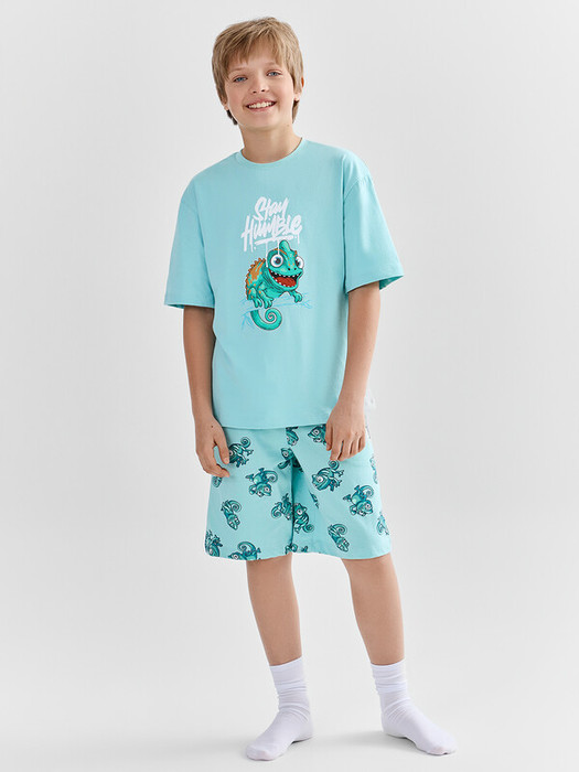 Комплект для мальчиков состоит из джемпера и шортов.