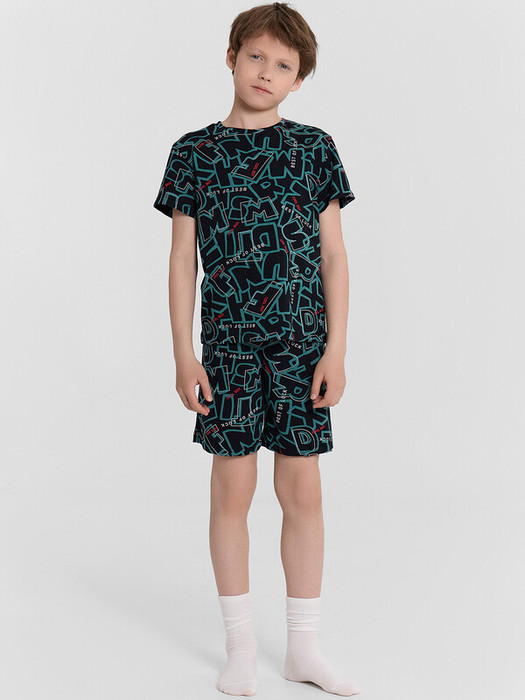 Домашний комплект для мальчиков — идеальное сочетание комфорта и практичного дизайна. Футболка прямого силуэта с короткими рукавами и круглой горловиной обеспечивает удобную посадку и свободу движений. Легкий крой делает ее комфортной для сна и повседневного отдыха. Шорты длиной до колен оснащены эластичным поясом с регулируемым шнурком, что позволяет индивидуально подстраивать посадку, обеспечивая дополнительный комфорт. Выполненный из 100% хлопка, комплект мягкий, дышащий и приятный к коже, создавая максимальное удобство. Этот вариант отлично подойдет мальчикам, которые ценят удобство, качество и стиль, делая отдых и сон еще более приятным!