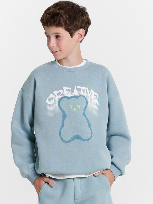 Свитшот для мальчиков, свободного силуэта. Горловина округлой формы, из рибаны. Шов втачивания закрыт хб тесьмой. Плечо спущено, рукав втачной длинный. На рукавах манжеты из рибаны. Пояс отрезной из рибаны.