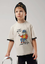 Детская футболка для девочки. Модель прямого кроя, выполнена из эластичного хлопкового трикотажа джерси. Спереди - принт с милым мишкой. Горловина круглая. Рукава-крылышки из сетки.