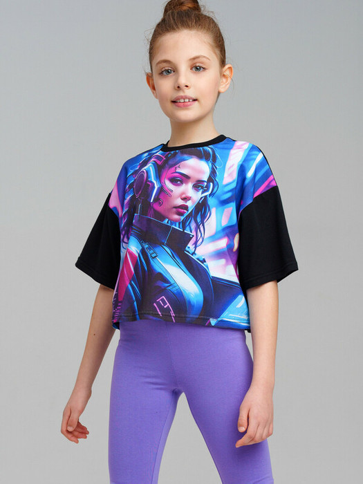 Футболка для девочки подростка.  Футболка оверсайз из качественного и приятного на ощупь трикотажа джерси с высоким содержанием хлопка 95%. Благодаря наличию эластана в составе ткани изделие проще в уходе и держит форму. Модель выполнена из качественного и приятного на ощупь трикотажа.
