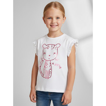 Детская футболка для девочки. Модель прямого кроя, выполнена из эластичного хлопкового трикотажа джерси. Красочный принт с милыми мишками. Горловина круглая.