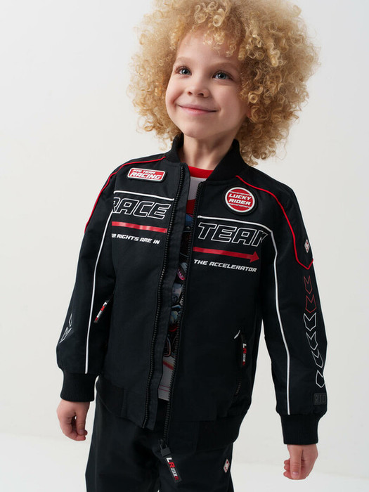 Стильная детская ветровка для мальчика. Температурный режим от +20С до +10С. Ветрозащитное и водоотталкивающее покрытие. Подкладка из мягкого трикотажа. Два боковых кармана на молнии. Внутренний карман на липучке. Манжеты, воротник и низ изделия выполнены из трикотажной резинки. На спине есть светоотражающая нашивка.