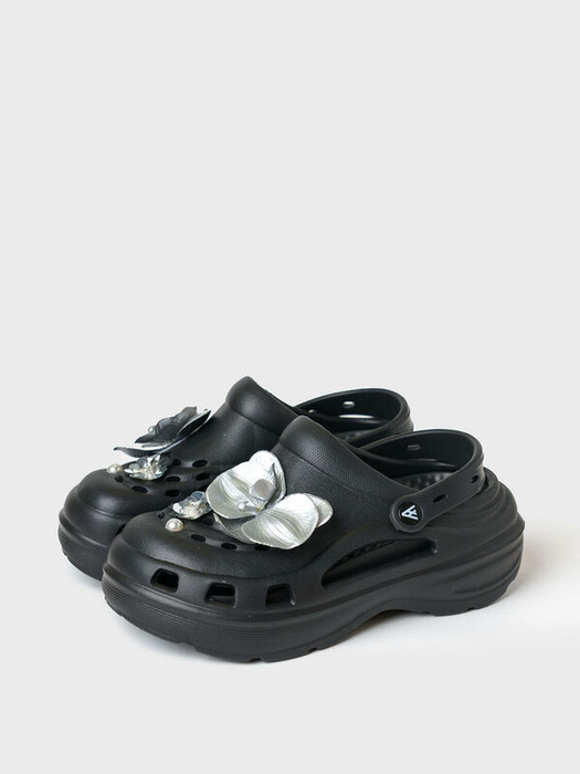 Сабо женские на высокой подошве. Модель выполнена из облегченного и прочного ЭВА. Материал хорошо моется. Форма модели учитывает эргономику стопы. Оригинальность модели придают большие съемные цветы-джибицы. Модель имеет перекидной ремешок фиксации ноги.