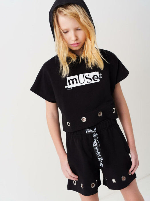 Шорты для девочки подростка. Модель свободного кроя из мягкого, хлопкового трикотажа футер. Удобная посадка обеспечивается эластичным поясом со шнуром. В боковых швах расположены удобные внутренние карманы. Внизу шорт предусмотрена декоративная отделка в виде металлических люверсов.