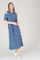 Представленное платье интригует и путает наш взгляд. Каскады подрезов на юбке подобны дюнам в пустыне, как будто ветра высекли этот неровный рельеф. К природной красоте конструктивных линий, добавляется великолепие свойств натурального льна. Ту мягкость и деликатность, которую дарит лён, не сможет заменить ни один материал.