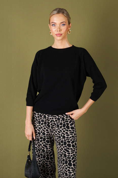Джемпер прямого силуэта с фактурой «жемчужный узор». Рукав реглан. Круглый вырез горловины, низ изделия и низ рукава оформлены резинкой. Изделие выполнено из мягкой структурированной пряжи.
