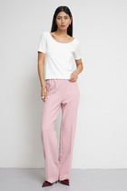 Блуза из вискозной ткани с сатиновым блеском. Свободный силуэт с разрезами в боковых швах и застёжкой на пуговицы. На задней части изделия выполнена кокетка с небольшой складкой. Вырез горловины обработан отложным воротником на стойке. Втачной рукав на манжете с застёжкой на пуговицы. Изделие украшено съемной планкой с перьями. Перед стиркой планку с перьями необходимо снять.