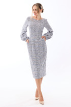 Платье из эластичного полотна прилегающего силуэта с разрезом в боковом шве. Длинный рукав-реглан. Линия плеча и линия горловины с эластичной резиной.