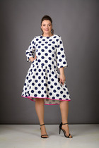 Платье из вискозной ткани с крэш-эффектом полуприлегающего силуэта. По центру передней части изделия выполнен шов, снизу разрез. V-образный вырез горловины и линия проймы оформлены косыми бейками.