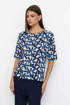 Костюм из эластичного полотна. Брюки прямого силуэта. Пояс с эластичной резиной. Жакет прямого свободного кроя с женственным шалевым воротником. На передней части изделия застёжка на пуговицу и накладные карманы. Втачной рукав. Изделие с плечевыми накладками, которые при желании можно убрать.