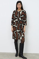 Платье из эластичного полотна свободного силуэта. Изделие со спущенной линией плеча и длинным рукавом. Вырез горловины оформлен бейкой из основной ткани. В таблице размеров представлены параметры человека, а не изделия.