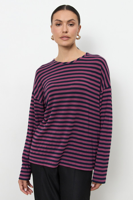 Джемпер из эластичного полотна. Свободный силуэт со спущенной линией плеча и длинным рукавом. Круглый вырез горловины окантован эластичной бейкой. В таблице размеров представлены параметры человека, а не изделия.