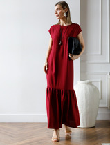 09.04 Vilatte Платье с воланом изо льна с вискозой D22.207 гранатовый