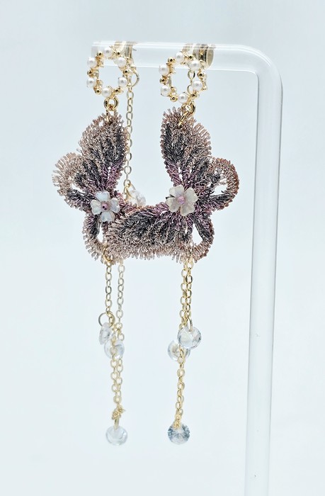 Текстиль, жемчуг Майорка, цирконы, ювелирный сплав. Гальваническое покрытие: золото.