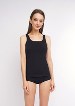Моделирующий топ на широких бретелях со съемными чашками, выполнен из мягкой эластичной микрофибры. Мягкие поролоновые вкладыши оказывают легкий пуш-ап эффект, при необходимости, вкладыши можно убрать.