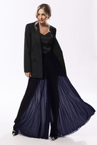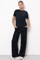 Брюки прямого силуэта. Застёжка -гульфик с молнией. Обработаны карманы в боковых швах. Передние половинки по центру брюк обработаны отделочным швом с разрезом по низу