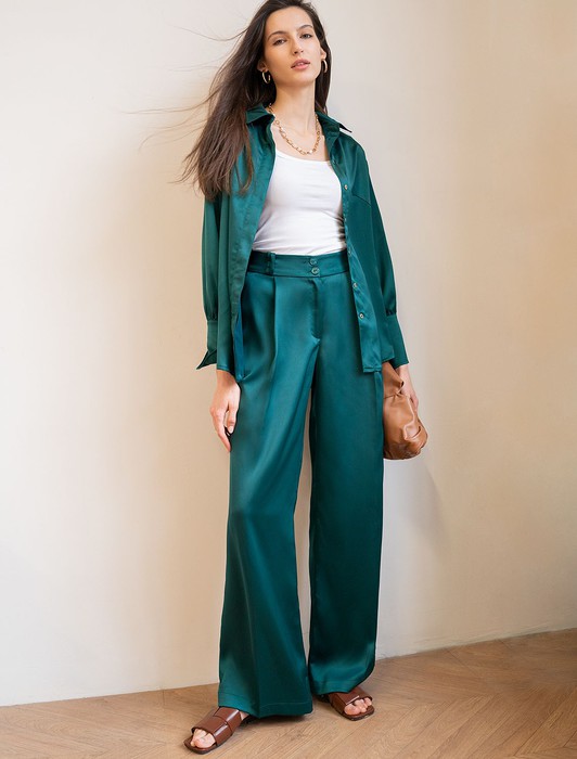 АКЦИЯ Брюки-палаццо из полуматового плотного сатина