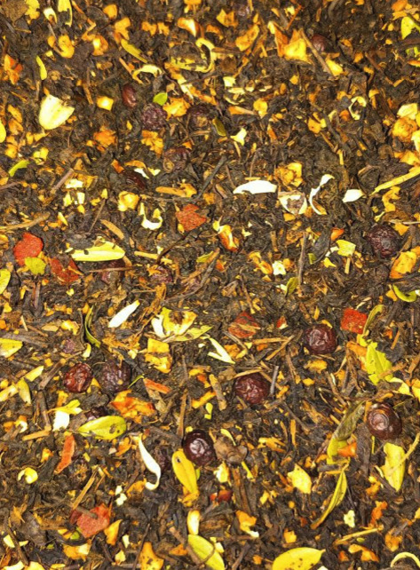 Чёрный чай, яблоко, груша, толокнянка, цветки апельсина, боярышник, папайя, аромамасла