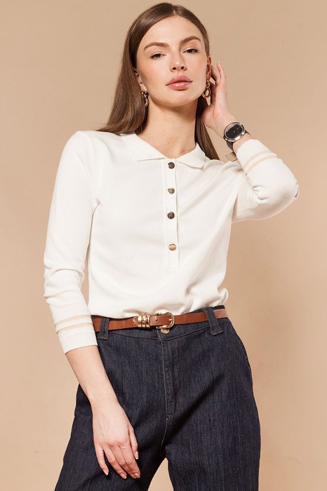 АКЦИЯ Черная ПятницаДжемпер - поло с золотистыми пуговицами и люрексом на рукав