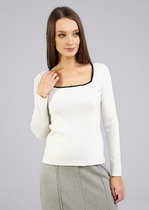 Джемпер из трикотажного полотна джерси фактурное, свободного кроя. Округлая горловина с обтачкой. Длинный рукав со спущенной линией плеча, по низу манжеты. По переду декоративные защипы. По низу изделия манжет с боковыми разрезами.