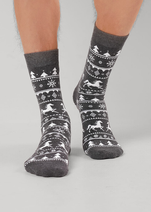 теплые плюшевые новогодние мужские носки со скандинавским орнаментом