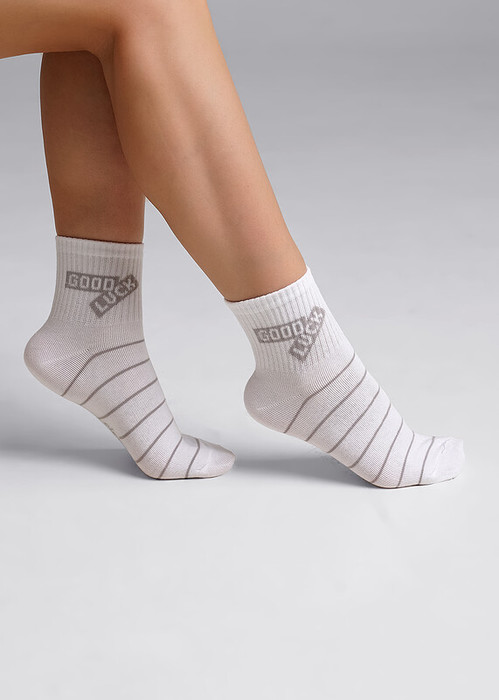 укороченные женские носки в полоску с надписью на паголенке