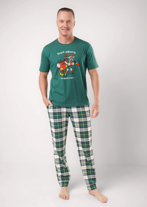 Акция Clever Пижама мужская CLE MHP450773/2 т.зелёный/молочный
