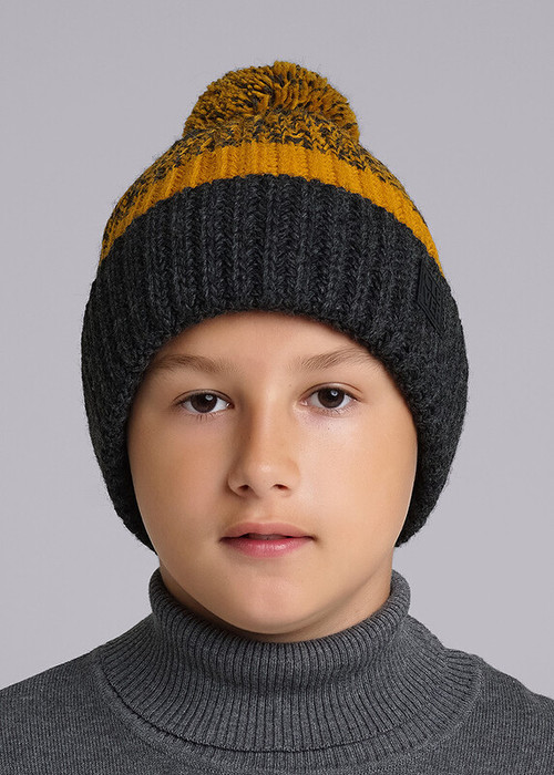 Акция Clever Шапка детская CLE 433838ап флис меланж т.серый/горчичный
