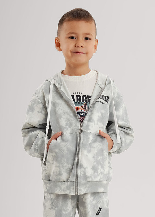 Стильная толстовка из варёного футера для мальчика. Комфортная посадка оверсайз, капюшон, застежка на молнии, удобные карманы, эластичные манжеты и пояс - всё, что нужно для активной жизни ребёнка! Сочетай толстовку с брюками из новой коллекции.