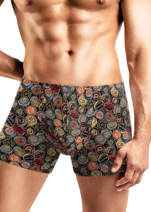 Шорты удлиненные комфортной посадки выполнены из оригинального полотна в фешн набивку ""крышки"". Трусы дополнены фирменным жаккардовым логотипом.