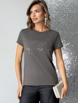Vilatte Нарядная футболка с принтом фольгой из премиального хлопка с эластаном D