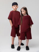 Костюм для девочки из плотного гладкокрашеного трикотажного полотна "кулирка", состоящий из футболки и шорт. Футболка - свободного покроя, с удлиненными плечевым и швами, короткими втачными рукавами и горловиной овальной формы, обработанной втачной планкой. В нижней части переда слева настрочен декоративный элемент прямоугольной формы. По горловине проложена отделочная строчка. Шорты - классического покроя, на притачном поясе с эластичной тесьмой внутри и карманами в боковых швах. Для регулирования степени прилегания шорт по талии в пояс вставлен шнурок, продетый через два отверстия в соединительных швах в центре пояса.