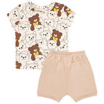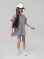 Костюм для мальчика, состоящий из футболки и шорт. Футболка - свободного покроя, короткими втачными рукавами и горловиной овальной формы, обработанной втачной планкой. По шву втачивания планки настрочена двойная отделочная строчка. Шорты - удлиненные, с карманами в боковых швах, на притачном поясе с эластичной тесьмой внутри.