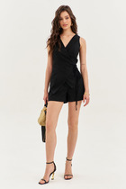 Туника полуприлегающего силуэта . Спинка со средним швом и талиевыми вытачками. По переду выполнены нагрудные вытачки, которые выходят из боковых швов. Низ туники ассиметричной формы. Вырез горловины округлой формы. Брюки прямые, слегка зауженные к колену. На притачном поясе сзади с резинкой. Брюки с карманами. Застежка на тесьму молнию. Костюм декорирован съемной брошью.