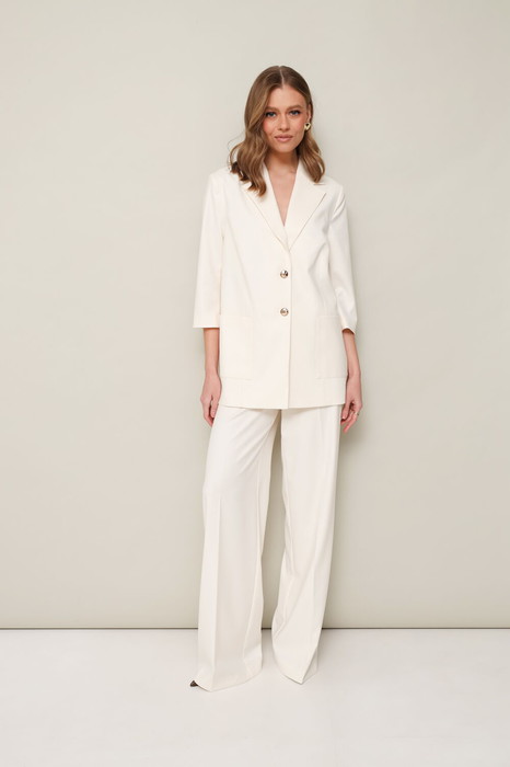Стильный комплект, состоящий из жакета и брюк.