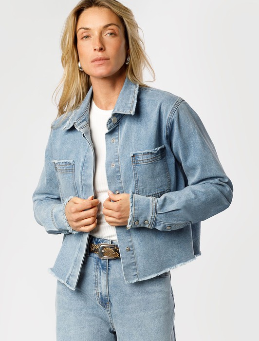 Состав: 70%Хлопок 28%ПЭ 2%ПУ Параметры модели на первом фото: Рост 172, бюст 88, талия 64, бедра 88 Размер товара на первом фото: 42Куртка-рубашка в голубом оттенке выполнена из эластичного денима. Укороченная модель с легкой декоративной стиркой дополнена трендовым открытым срезом с бахромой и двумя накладными карманами. Застежка планка с потайными пуговицами. Прямой силуэт подходит для любой фигуры.