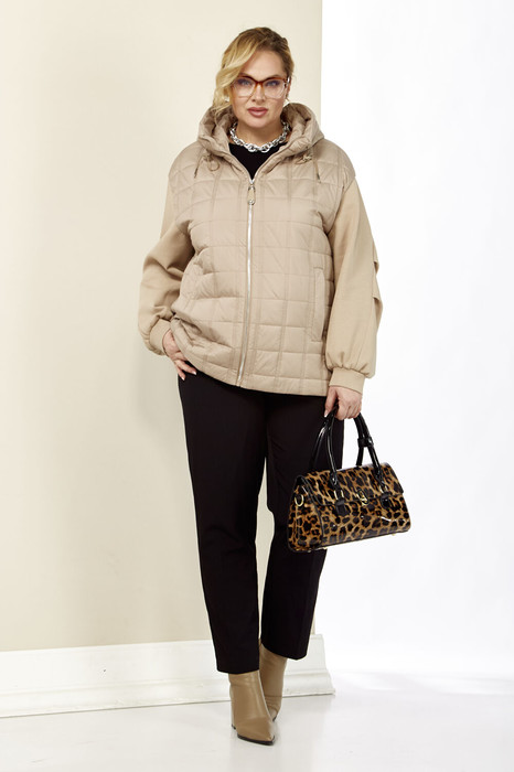 Женская, демисезонная куртка для тех, кто ценит стиль и комфорт в весенние дни. Эта куртка станет отличным вариантом для межсезонья, когда погода может быть непредсказуемой. Куртка выполнена из комбинированных, качественных материалов. Утеплитель синтепон, изделие на подкладке. Застежка центральная на молнии с декоративной подвеской. По переду куртки действующие карманы на внутренних кнопках. Рукав втачной, двухшовный, по локтевому шву выполнены две глубокие, воздушные складки для удобства и свободного облегания. Рукава на манжетах, выполнены из плотного трикотажа. Капюшон не съемный, с фиксирующейся кулисой и декоративными элементами. Спинка прямая, цельнокроенная. Низ изделия на регулируемой кулисе.  Эта куртка идеально сочетается с повседневной одеждой и легко комбинируется с различными образами, от спортивного до романтичного. Температурный режим от 0 до +15. Длина изделия по спинке от шва втачивания капюшона 73 см. Длина рукава плечевого шва 56 см.
