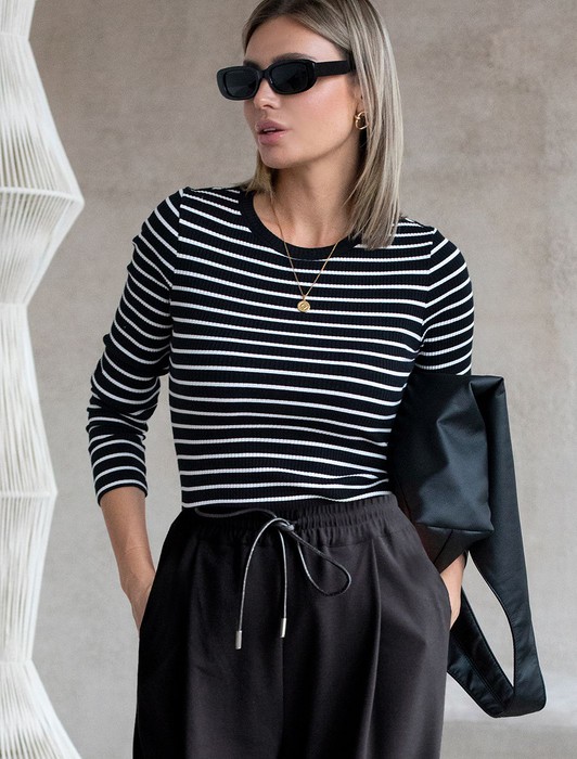 АКЦИЯ Лонгслив из трикотажа в широкий рубчик