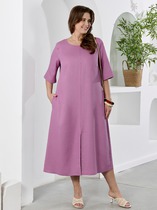 Платье из трикотажного полотна «кулирка» с набивным рисунком, отрезное по талии, с короткими втачными рукавами, горловиной V-образной формы, окантованной основным материалом и карманами в боковых швах. Полочка – с рельефами, выходящими из плечевых швов. Входы в карманы окантованы. Юбка – широкая, присборенная по шву стачивания с лифом и оборкой по низу.